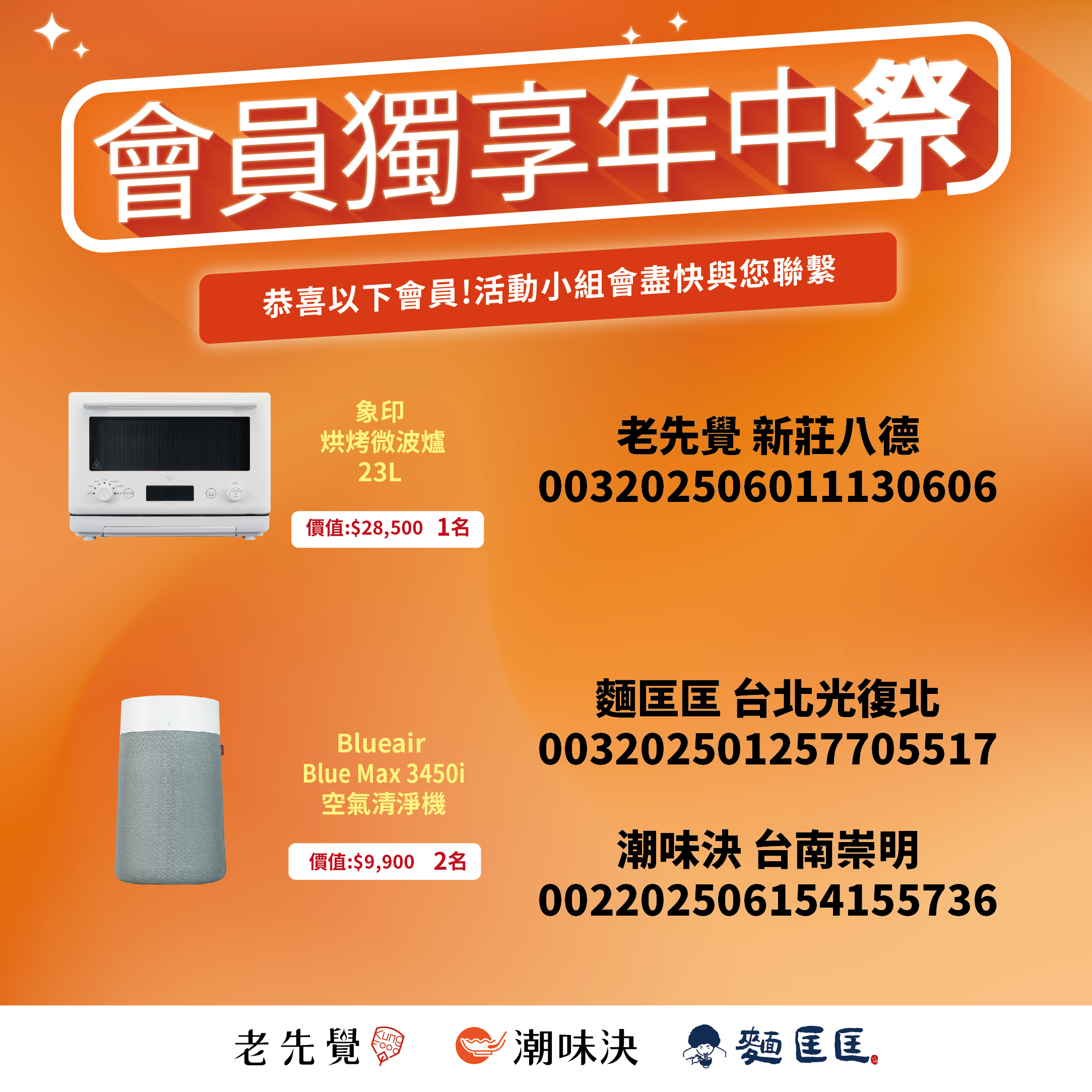 ・本活動限品牌會員參與,獎項由三品牌共同抽出,若結帳前未報會員電話則恕不補發