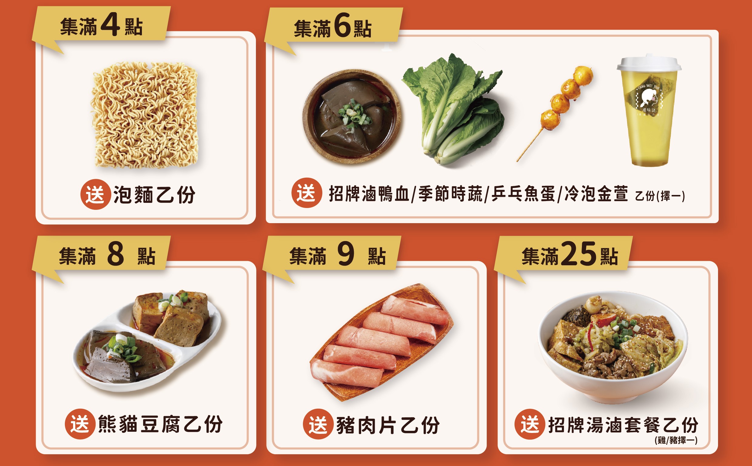 - 於本公司品牌餐廳消費,可獲贈單筆消費實付金額新台幣每50元1點計算之點數,該點數獲贈截止日依本公司會員公告為主。